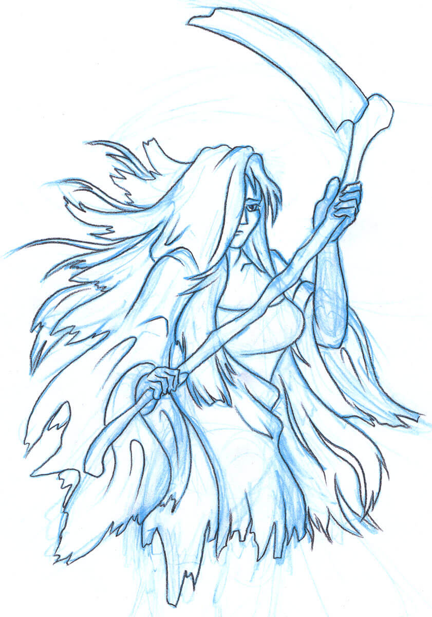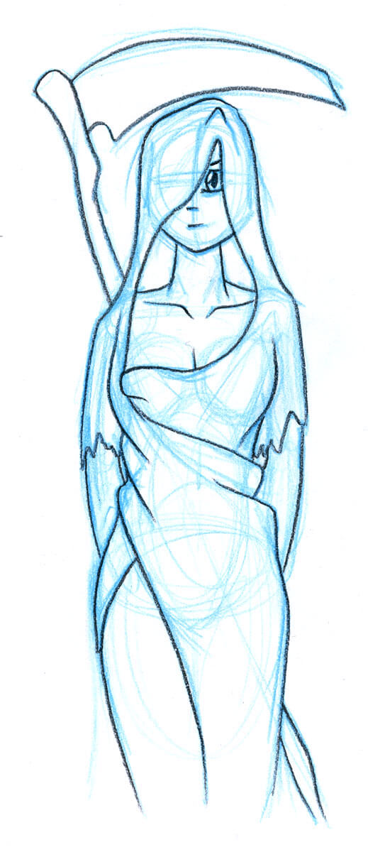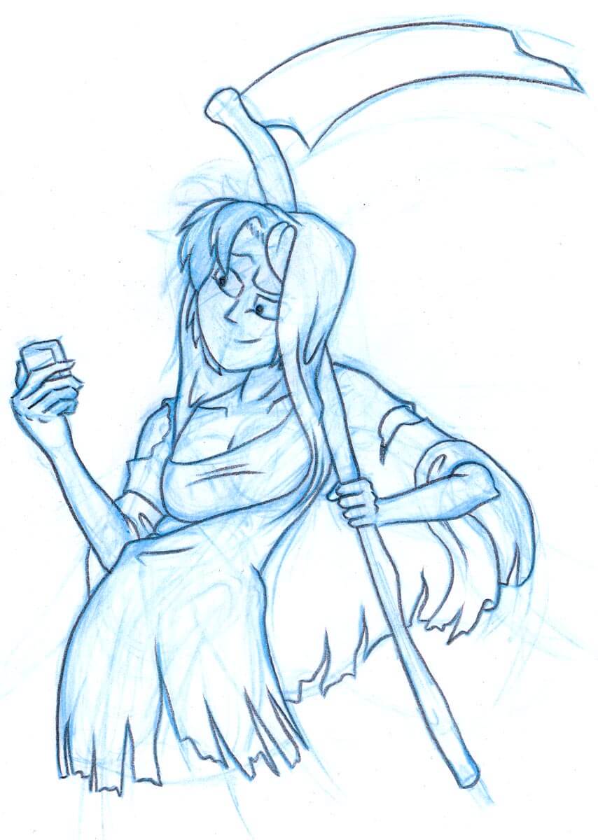 Character designs by Michael Cawood, for Death in the short film ‘Devils Angels & Dating’.